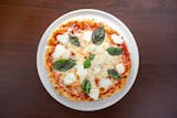 Fresh plum tomato sauce, freshly shredded mozzarella, fresh basil, e.v.o.o